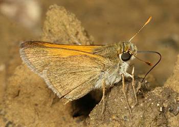 But unlike Peck’s Skipper, Tawny-edged Skipper is “not especially tolerant of heavy disturbance” (Cech 2005: 279); that is to say, it will not likely be found in recently plowed fields, frequently mowed areas, or manicured grounds and golf courses.